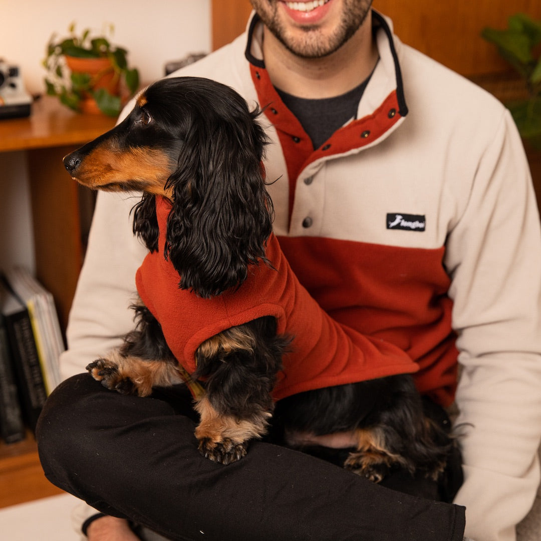 The Longboi Fleece Sweater was designed so you can match with up to two of your favourite Dachshund Fleece Sweaters